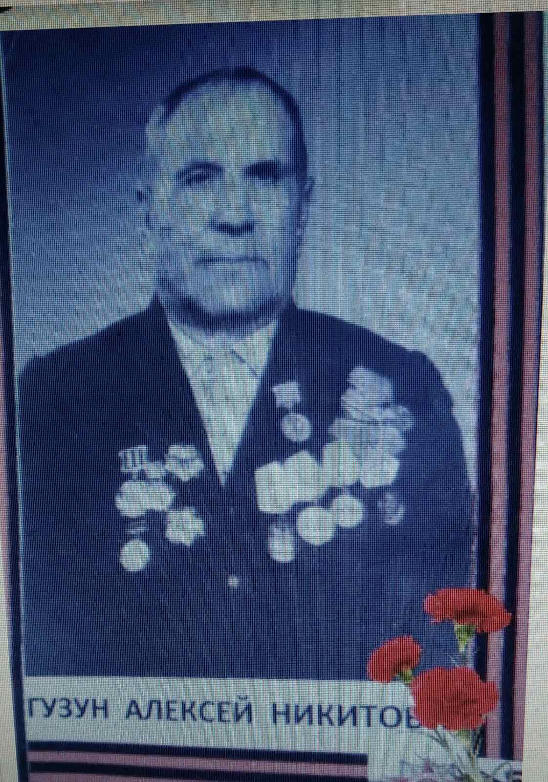 «Гузун Алексей Никитич родился в Молдавии 13 марта 1919 года. Прошел всю войну. Служил в 42-й гвардии в звании ефрейтора. Получил медаль «За освобождение Кавказа», медаль «За отвагу». Имел семью, четверых детей. Всю жизнь проработал в колхозе. Умер в 2002 году на своей родине».